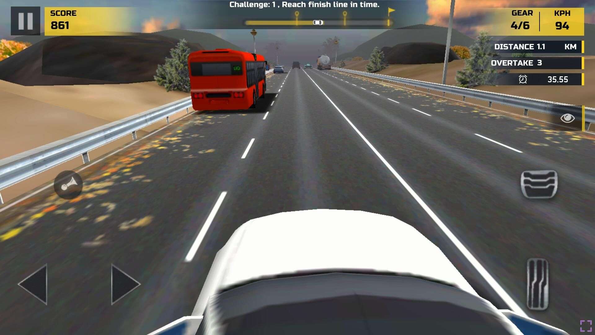 Swipe horizontally to steer your vehicle, avoid traffic and obstacles while racing at top speed